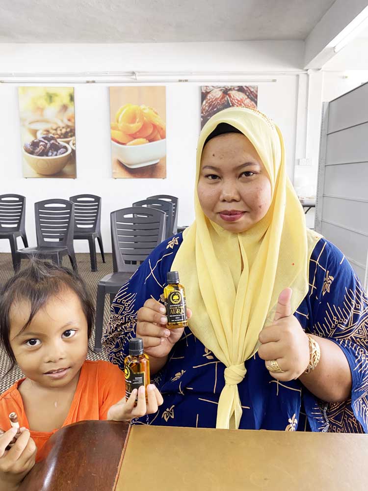 * Minyak terapi aura ini akan memberi kesan & rasa yang amat selesa selepas 2-3 minit disapu, kerana pada permulaannya minyak ini akan mula meresap dan merangsang sistem saraf dan selepas itu, baru akan memberi kesan dan rasa yang amat selesa pada tempat yang disapu.